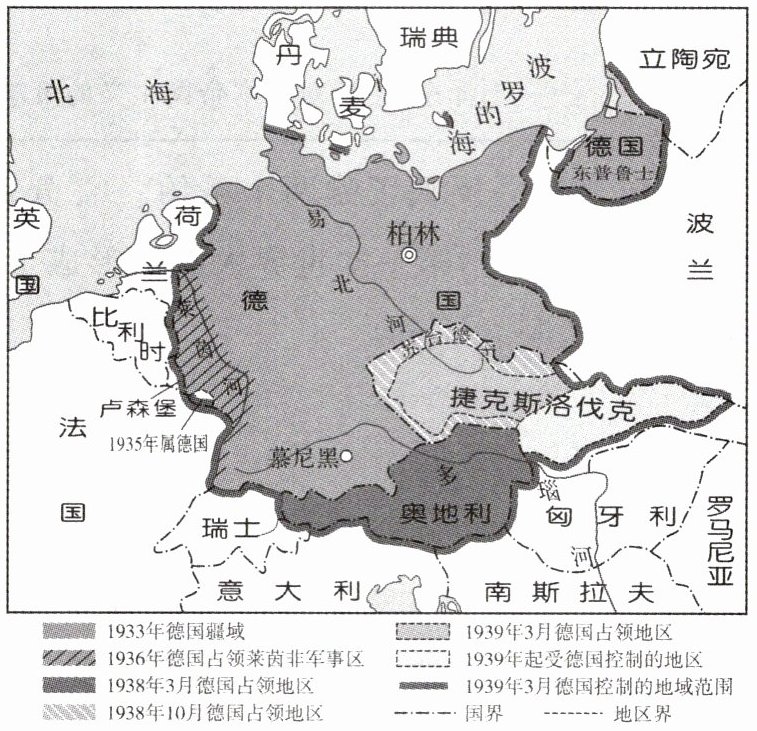 6. 【教材知识拓展改编】(2024·聊城中考改编)地图中的“苏台德地区”原属捷克斯洛伐克。1938年9月,英、法等国为了保护自己的既得利益,以牺牲捷克斯洛伐克的利益为代价,将“苏台德地区”强行割让给德国。该材料体现了英、法等国(