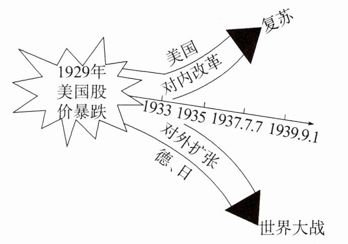 论述:1929 年,一场规模空前的经济大危机迅速席卷了整个资本主义世界。1933 年,为应对经济危机,罗斯福实施新政,推动美国经济缓慢复苏。新政增强了美国政府的宏观调控能力,恢复了美国人民的信心,对资本主义世界产生了深远影响。同一时期,面对空前严重的经济危机,德国、日本却建立了法西斯专政,走上了对内实行独裁统治,对外侵略扩张的道路,给各国人民带来了深重的灾难。(4 分)