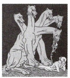 该漫画于1921年刊登在德国一家杂志上。漫画将英、法、美、意、日比作一只五头怪兽,它将德国踩在脚下,贪婪地将其内脏吞食殆尽。