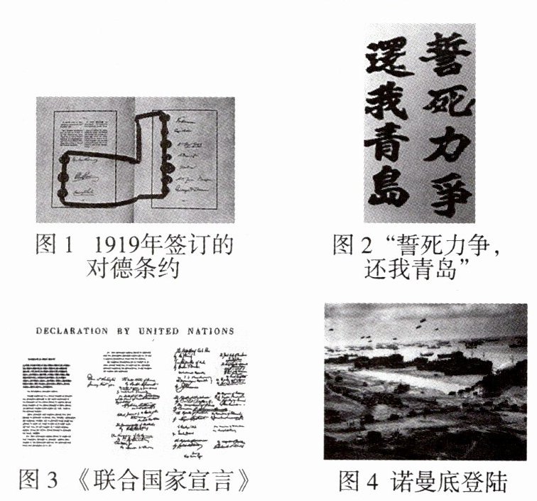 (1)小历老师需要负责布置“第二次世界大战中的国际合作”专栏展板,请你帮她从以上四幅图片中选择一幅合适的图片,并简要说明你的理由。(3分)
