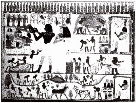 6. 如图是古埃及墓葬壁画,该壁画描绘了古埃及人从事渔猎和农业生产的场景。据此可知,古埃及 (