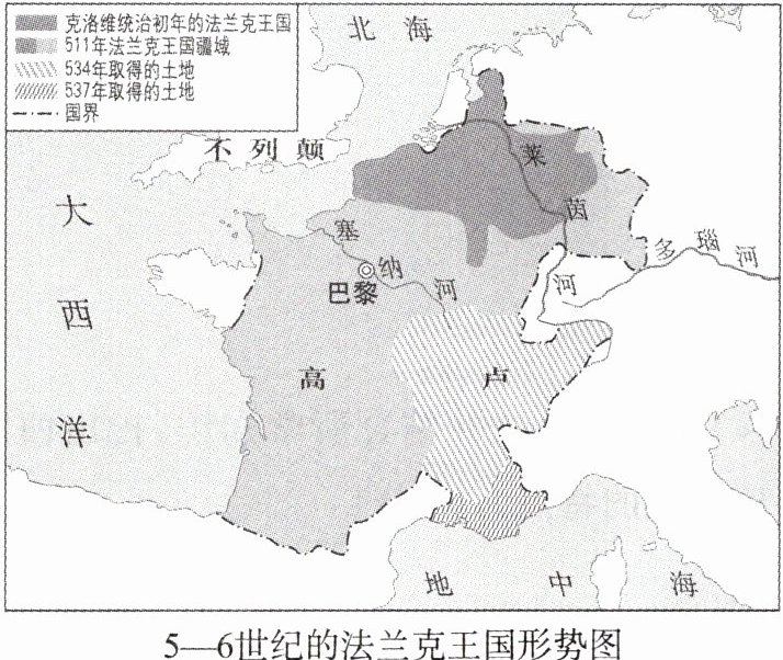 3.【教材图片改编】(八中阶段练习)下面是5—6世纪的法兰克王国形势图。据图可知,此时法兰克王国 (