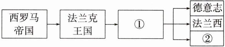 8.(永川区期末改编)下面是法兰克王国发展演变的示意图,其中①、②处应填写的内容是 (