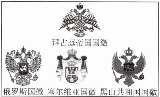 9.新素材·国徽(2021·宜昌中考改编)今日俄罗斯、塞尔维亚以及黑山共和国的国徽图案与拜占庭帝国的国徽图案有共同的元素——双头鹰标识(见下图)。这表明拜占庭文化(