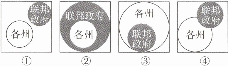 7. 新考法·跨学科(数学)(2021·德阳中考)根据1787年美国宪法,下图中正确反映美国联邦政府与州政府权力关系的是(