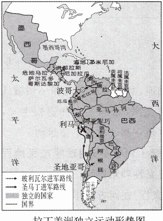 )A.经过战斗,拉丁美洲所有殖民地均实现解放