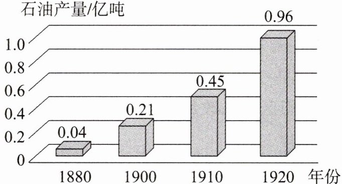 4. (2023·大连中考)观察下面图片并分析,19世纪末20世纪初世界石油产量发生变化的主要原因是(