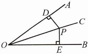 如图,∵ OC 平分∠AOB,点 P在 OC 上,PD⊥OA,PE⊥OB,垂