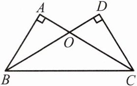 【解析】:本题考查了三角形全等的判定定理和性质。首先,根据题目已知条件,我们有∠A= ∠D= 90°,这表明两个三角形都是直角三角形。又因为AC= DB且BC是两个三角形的公共边,所以我们可以利用HL(Hypotenuse-Leg)定理来证明两个三角形全等。接着,由于两个三角形全等,我们可以得出AB= DC。然后,我们可以利用这些信息来证明△ABO和△DCO全等,从而得出OB= OC。
