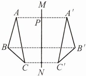 在本题中,$\bigtriangleup ABC$和$\bigtriangleup A'B'C'$关于直线$MN$对称,点$A'$,$B'$,$C'$分别是点$A$,$B$,$C$的对称点。