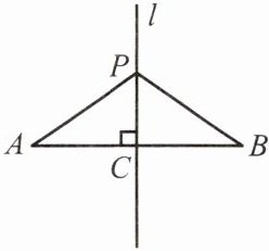 如图,$\because$ 直线$l\perp AB$,垂足为$C$,$AC= CB$,点$P在l$上,$\therefore PA= PB$.