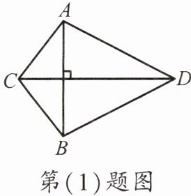 (1)如图,$CD是线段AB$的垂直平分线,若$AC= 1.6\,\text{cm}$,$BD= 2.3\,\text{cm}$,则四边形$ACBD$的周长为(