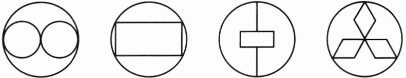 第四个图形:一个圆内接一个菱形,菱形有两条对角线都是圆的对称轴,且这两条对称轴互相垂直,即它的对称轴有2条(菱形有两条对称轴,且都是圆的对称轴),符合题意,