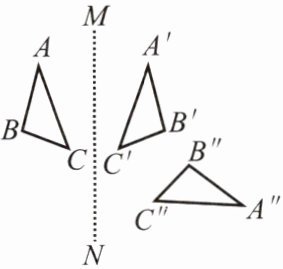 例2 如图,$\triangle ABC和\triangle A'B'C'$关于直线MN对称,$\triangle A'B'C'和\triangle A''B''C''$关于直线EF对称.