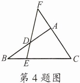 4.如图,在△ABC中,D,E分别是边AB和BC上的点.若∠B= 35°,∠C= 56°,∠F= 47°,则∠ADF的度数为______.
