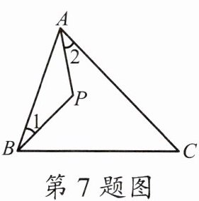 7.如图,在△ABC 中,∠1= ∠2,∠BAC= 65°,则∠APB 的度数是______.