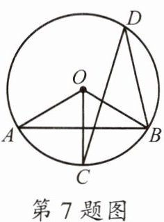 7.(2024·重庆B卷)如图,AB是$\odot O$的弦,$OC\perp AB交\odot O$于点C,D是$\odot O$上一点,连接BD,CD.若$\angle D= 28^{\circ}$,则$\angle OAB$的度数为 (