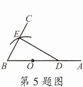 5.(2022·贵阳)如图,已知$\angle ABC= 60^{\circ}$,D为BA上一点,$BD= 10$,O为线段BD的中点,以点O为圆心,OB长为半径作弧,交BC于点E,连接DE,则BE的长是 (