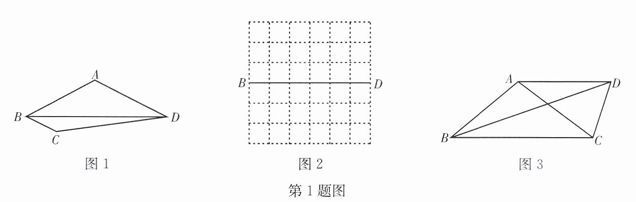 (1) 作图(略,需在图2网格中以BD为对角线,作出邻边相等且对角线平分内角的四边形,顶点A、C在格点上)。