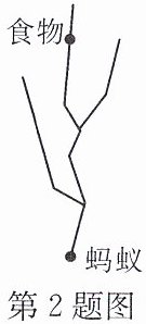 所有可能路径共2×1 + 1×2 = 4条(此处原解析有误,实际从图中可看出起点后第一个分叉有2条路,其中一条路直接到底无食物,另一条路又分2条路,一条有食物一条无,所以总路径数为1+2=3条,获得食物的路径1条)。