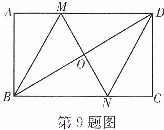 9.如图,在矩形ABCD中,对角线BD的垂直平分线MN与AD相交于点M,与BD相交于点O,与BC相交于点N,连接BM,DN.