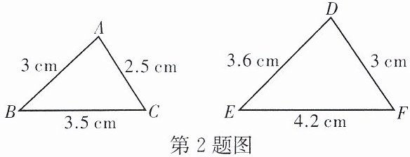 对于$\bigtriangleup DEF$:$DE = 3.6cm$,$EF = 4.2cm$,$DF = 3cm$。