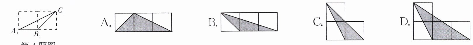 需要分别计算出四个选项中阴影三角形的三边长度,再与$△A_1B_1C_1$的三边长度进行比较,判断是否成比例。