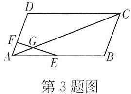 3. 如图,在$□ ABCD$中,点E是AB的中点,在AD上截取$2AF= FD$,EF交AC于点G,求$\frac{AG}{GC}$的值.