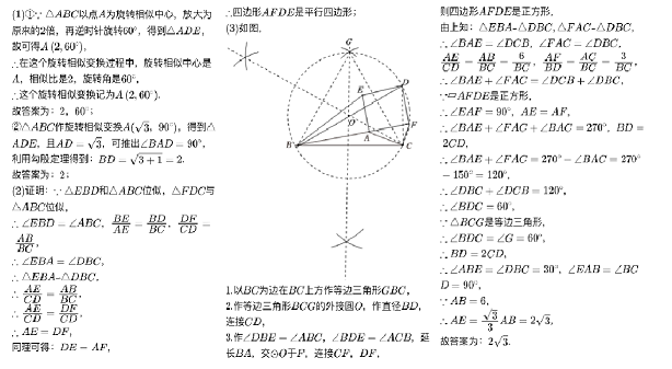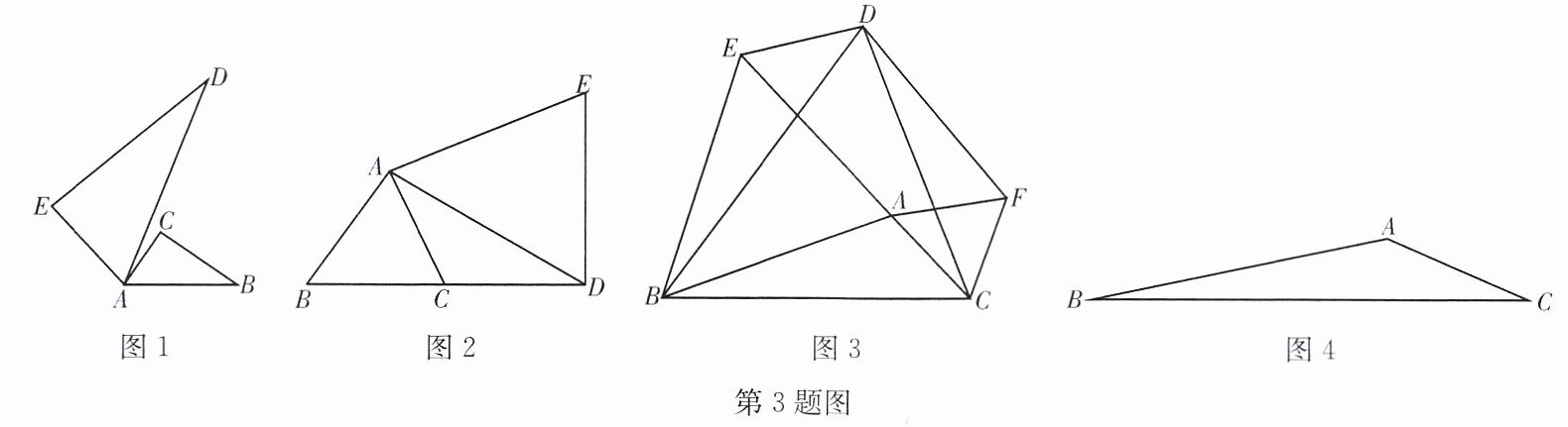 (2)如图3,$\triangle ABC经过B(k_1,逆\alpha)得到\triangle EBD$,又将$\triangle ABC经过C(k_2,顺\beta)得到\triangle FDC$,连接AE,AF,求证:四边形AFDE是平行四边形.