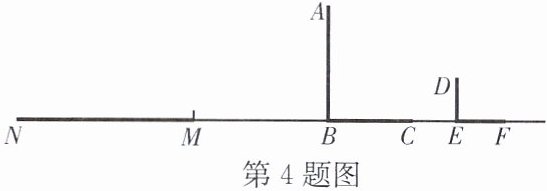 4. 如图,路灯下,广告标杆AB的影子是BC,小明(用线段DE表示)的影子是EF,在M处有一棵树,它的影子是MN.