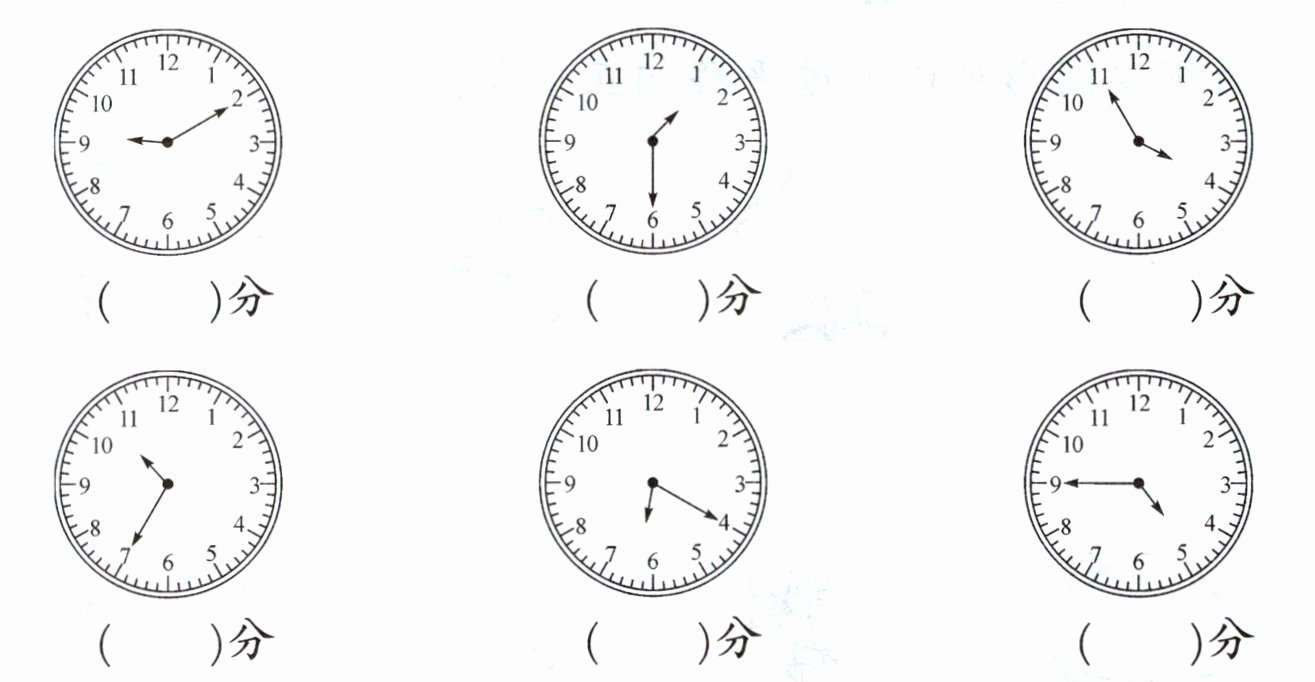 六、写出分针从 12 旋转到下面各个位置所经过的时间。