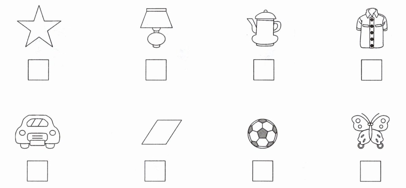一、下面的图形中,是轴对称图形的在$\square$里画“√”,不是的画“×”。