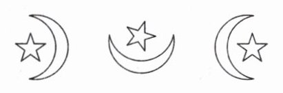 3. 按照顺时针旋转$90^{\circ}$的规律,下一个图形是将第三个图形顺时针旋转$90^{\circ}$(图形略,可根据规律自行绘制,即将星星和月亮的组合继续顺时针转动一格)。