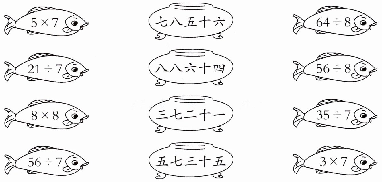 - $5×7$ 连 “五七三十五” 对应的鱼($35÷7$ 也连 “五七三十五”)。