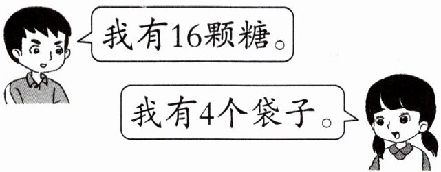 4. 把这些糖平均装在这4个袋子里,每个袋子里装几颗?