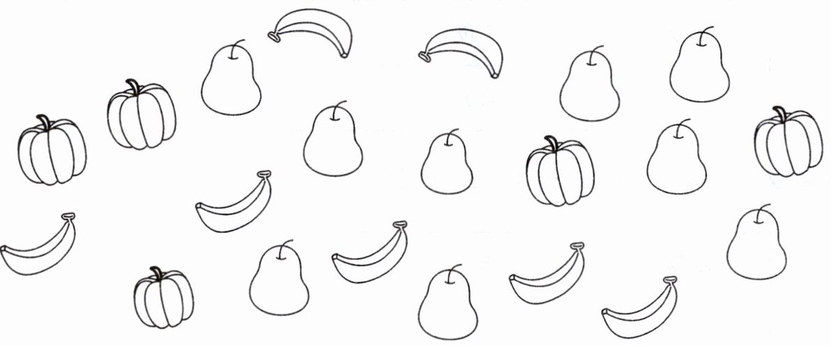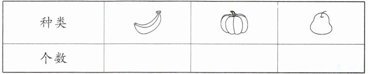 1. 用画“正”字的方法统计各种食物的数量。