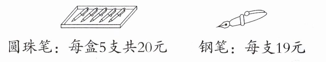 (1)买一支钢笔比买一支圆珠笔多花多少元?