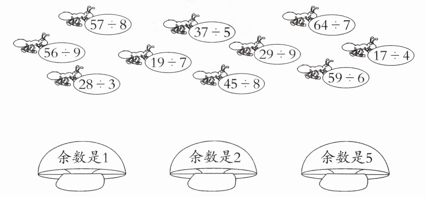 - 余数是$1$:$57÷8$、$64÷7$、$17÷4$、$28÷3$