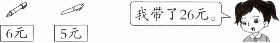 (1)答案不唯一,如:$26 \div 6 = 4$(支)……2(元) 可以买 4 支 6 元的笔 (2)买 1 支 6 元的笔!