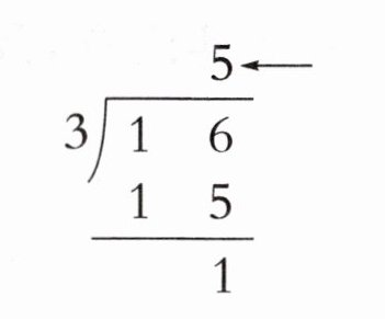 2. 有 16 个苹果,每 3 个装一盘,竖式中箭头所指的部分表示( )。