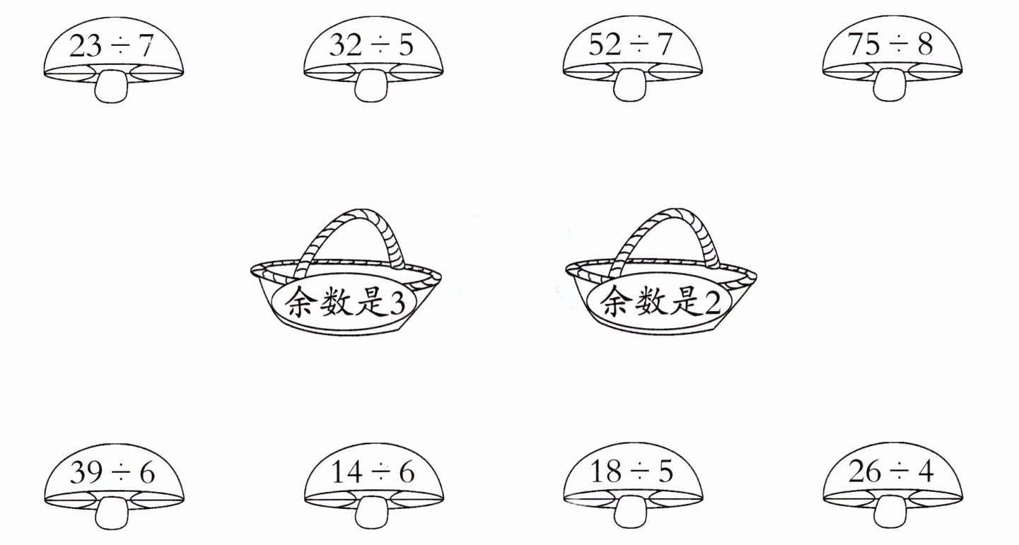 三、把蘑菇放入篮子里。(连一连)