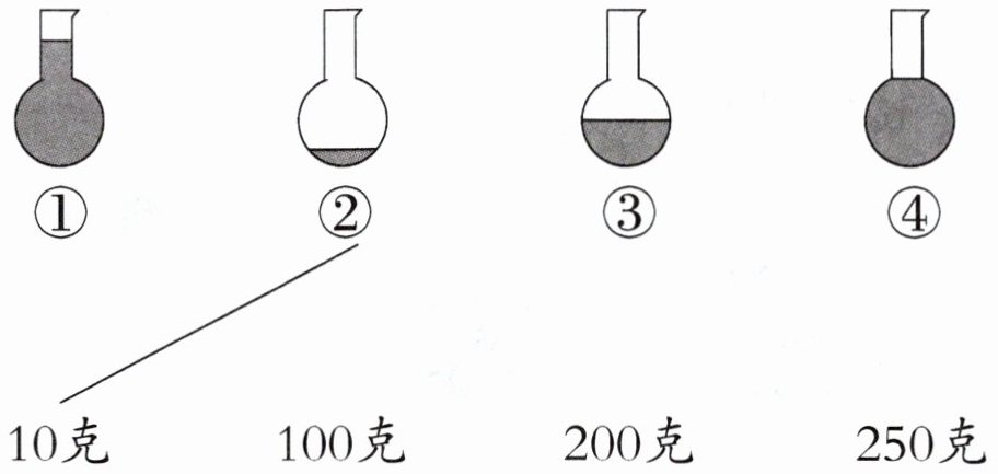 ①—250克,③—100克,④—200克, 1. ② ① 2. 50 3. 90 4. 560