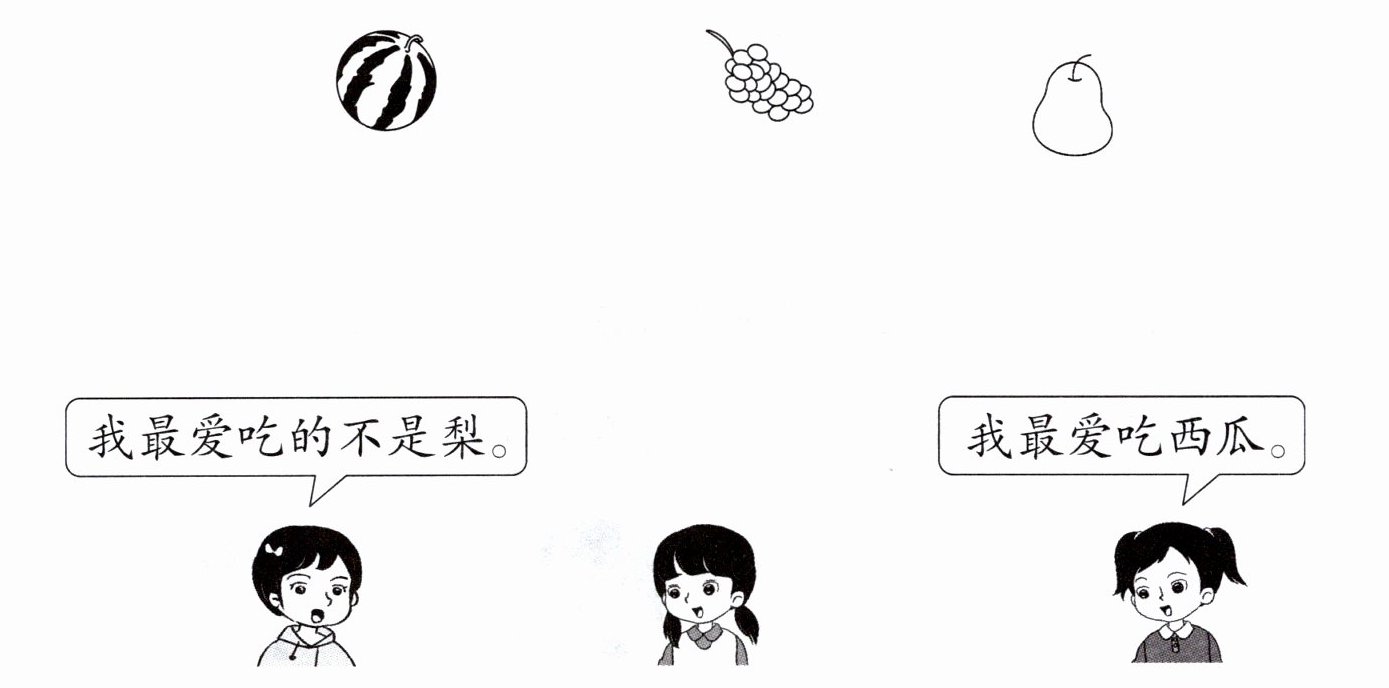 一、下面三种水果分别是她们最爱吃的一种。她们分别最爱吃什么?连一连。
