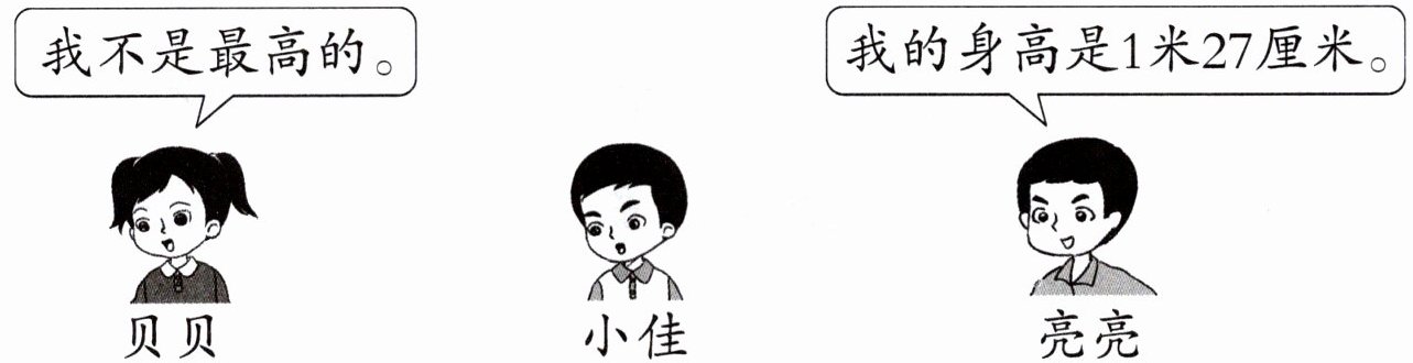 3个小朋友的身高分别是1米32厘米、1米38厘米和1米27厘米。