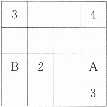 四、在下面的方格中,每行、每列都有1~4这四个数,并且每个数在每行、每列都只出现一次。B应该是几?