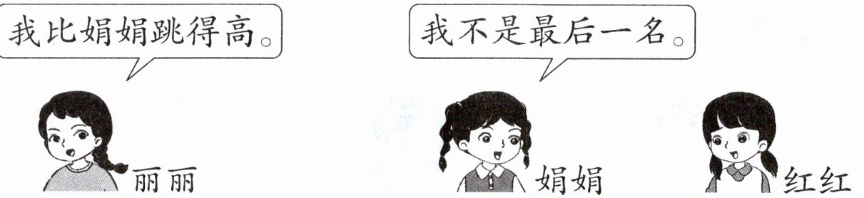 1. 丽丽、娟娟和红红三个人跳高,请给她们排出名次。