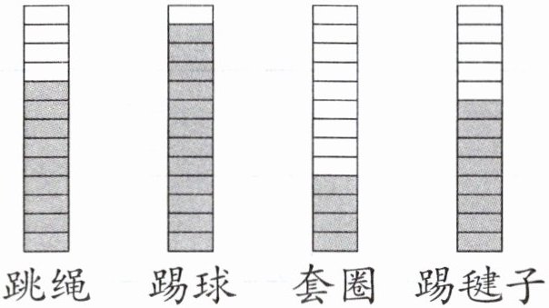 2. 跳绳的有( )人,踢球的有( )人,套圈的有( )人,踢毽子的有( )人。
