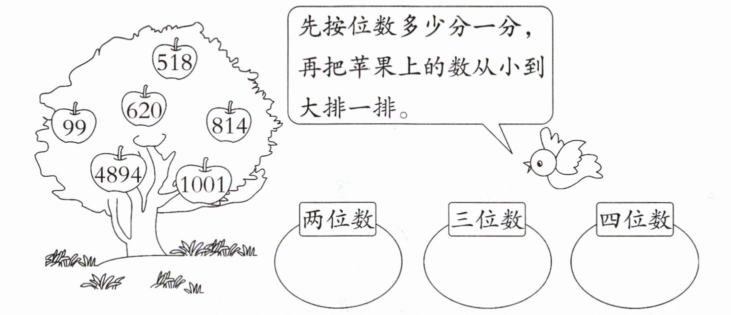 两位数:99 三位数:518、620、814 四位数:1001、4894 99 518 620 814 1001 4894