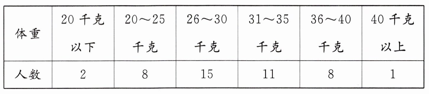(4)答案不唯一,如:26~30 千克范围内的人数比 36~40 千克范围内的人数多多少人? $15-8=7$ (人)