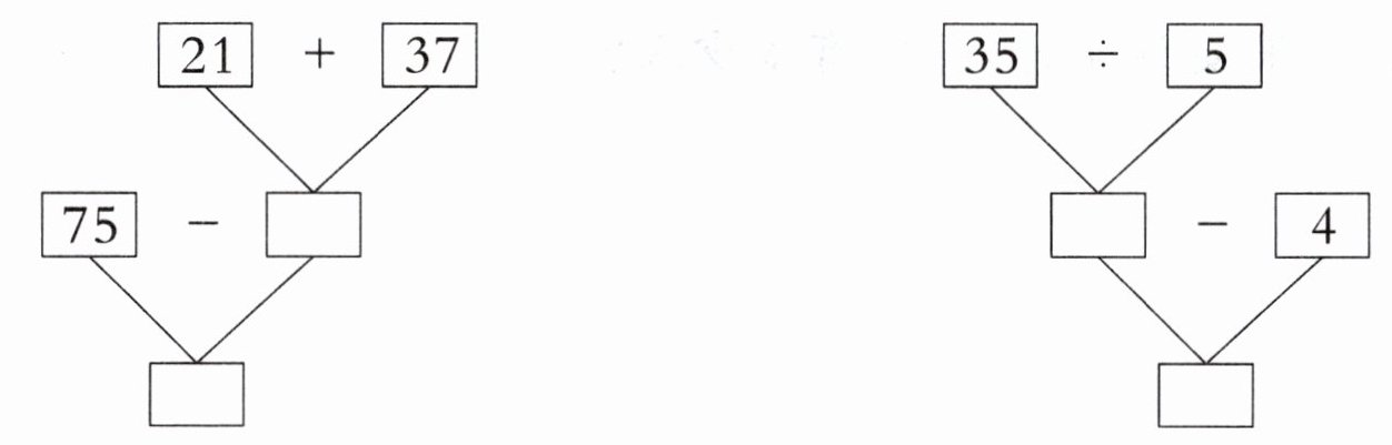 58 17 $75-(21+37)=17$ 7 3 $35÷5-4=3$